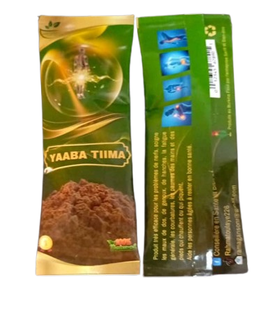 Découvrez Yaaba Tiima, un produit naturel formulé pour vous aider à retrouver votre vitalité et soulager les douleurs du quotidien. Présenté sous forme de poudre au cœur d'un emballage soigné, Yaaba Tiima est votre allié pour un corps apaisé et une meilleure qualité de vie.
